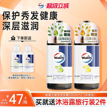 威露士洗发水300ml*2 佛手柑橙花小瓶洗发露头部洗发液蓬松官方
