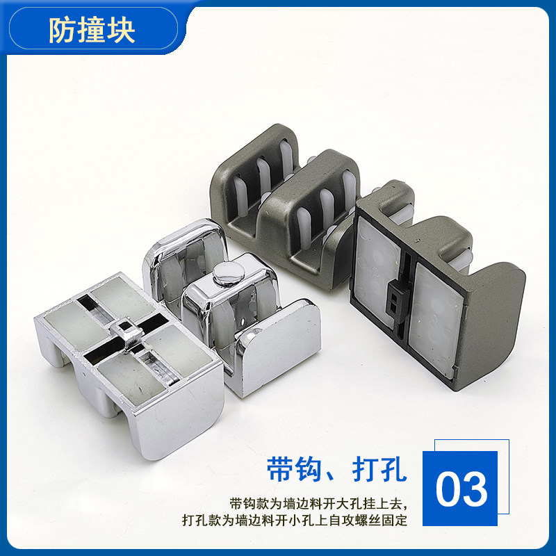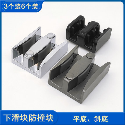 粤品诚淋浴房玻璃移动门止摆器枪灰下滑块塑料防撞黑色挂钩山字胶