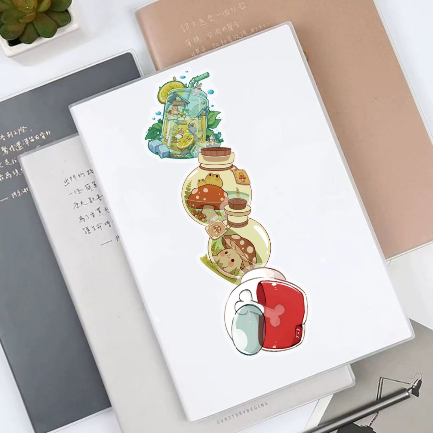50图案透明物体贴纸防水不干胶新款可撕网红ins风立体卡通贴画手账笔记本diy滑板车手机壳奖励手账防水无痕