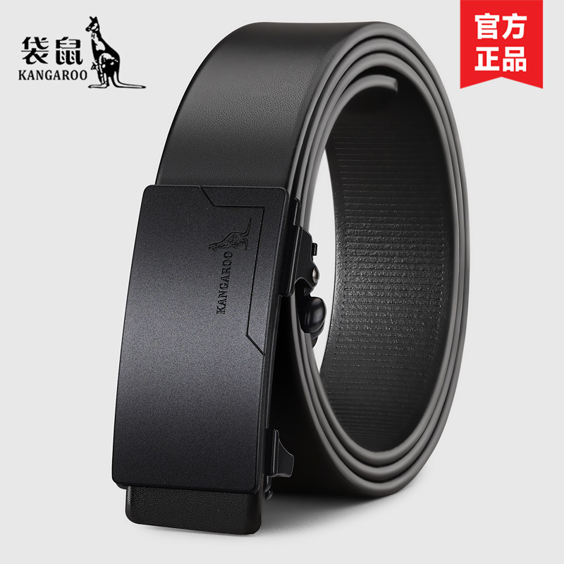 袋鼠男士无牙自动扣头层牛皮腰带