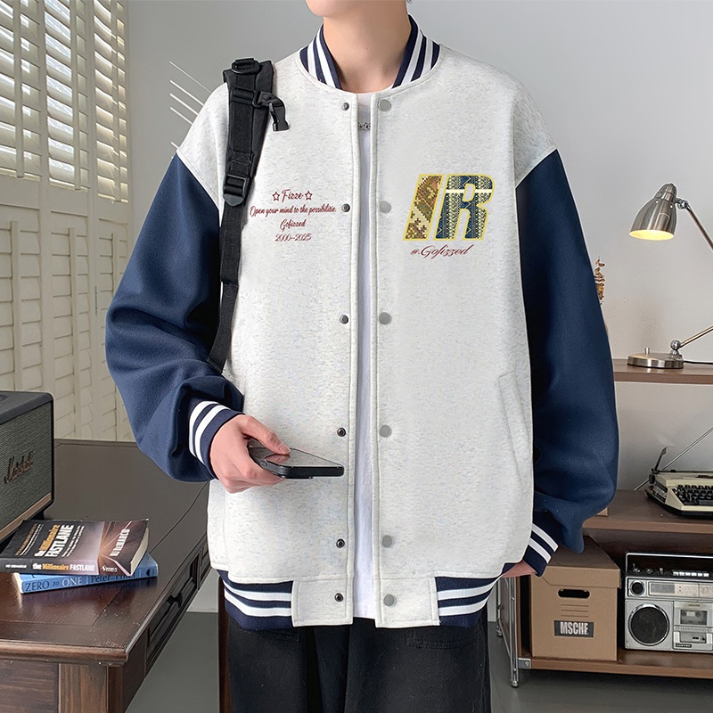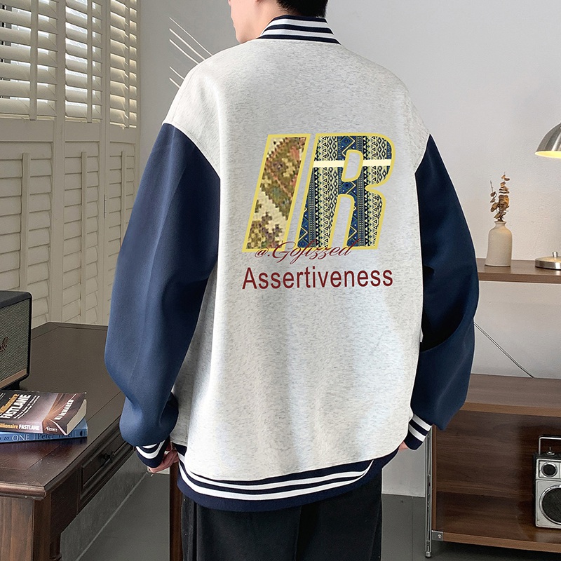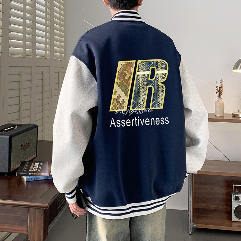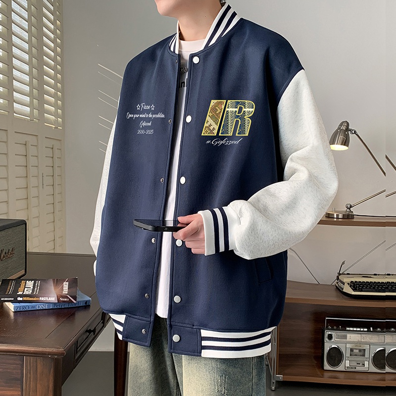 立领夹克男秋冬季新款单排扣开衫休闲外套oversize美式男装上衣服