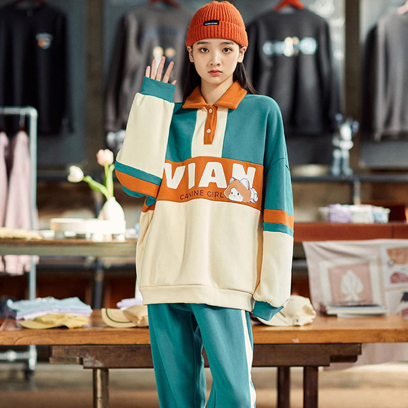 唐狮[犬系女孩]卫衣学院风春秋新款女装运动外套装运动服两件套