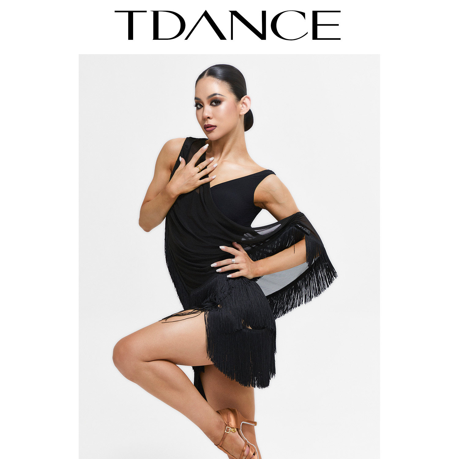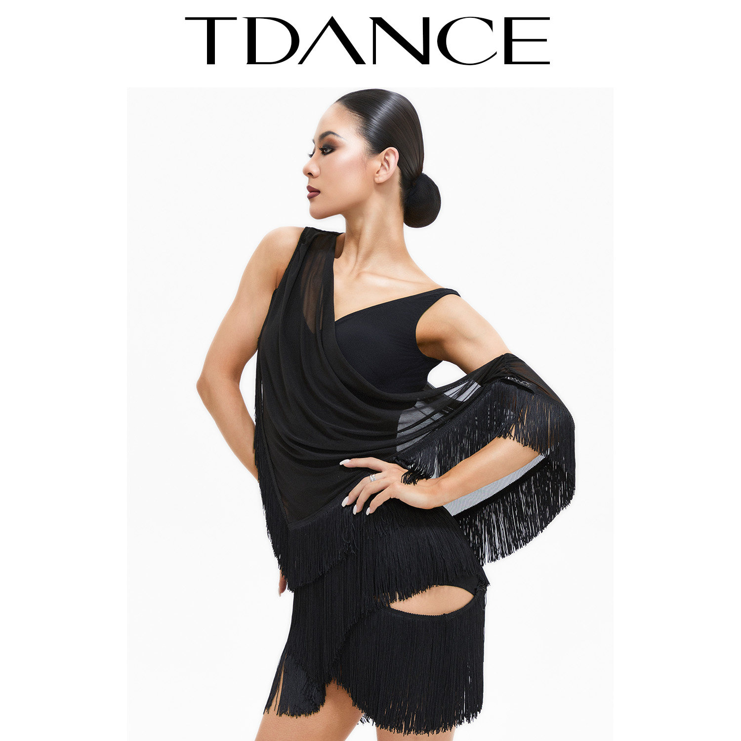 TDANCE女生拉丁【不对称挂臂流苏连体上衣】设计感成人高级GL-184
