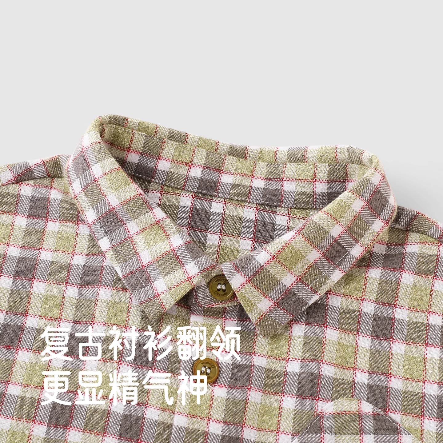 英氏儿童针织衫冬季保暖男款舒适毛衣毛衫休闲男童纯棉格子衬衫
