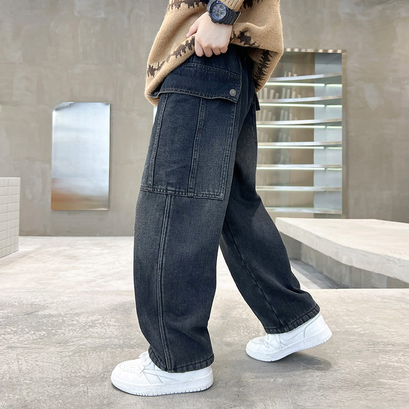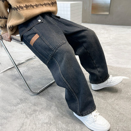 男童牛仔裤秋冬款童装2025新款儿童长裤中大童加绒裤子痞帅休闲裤