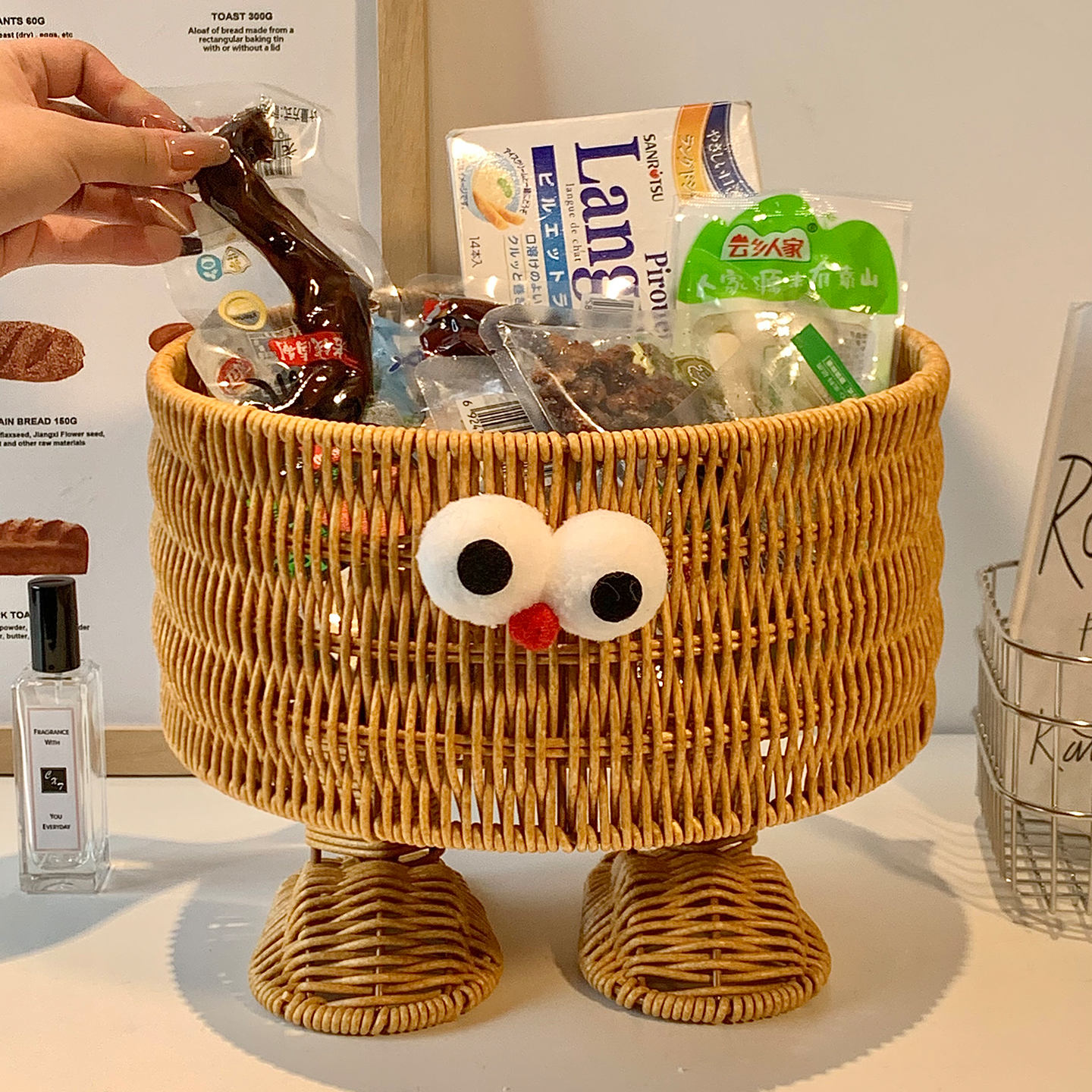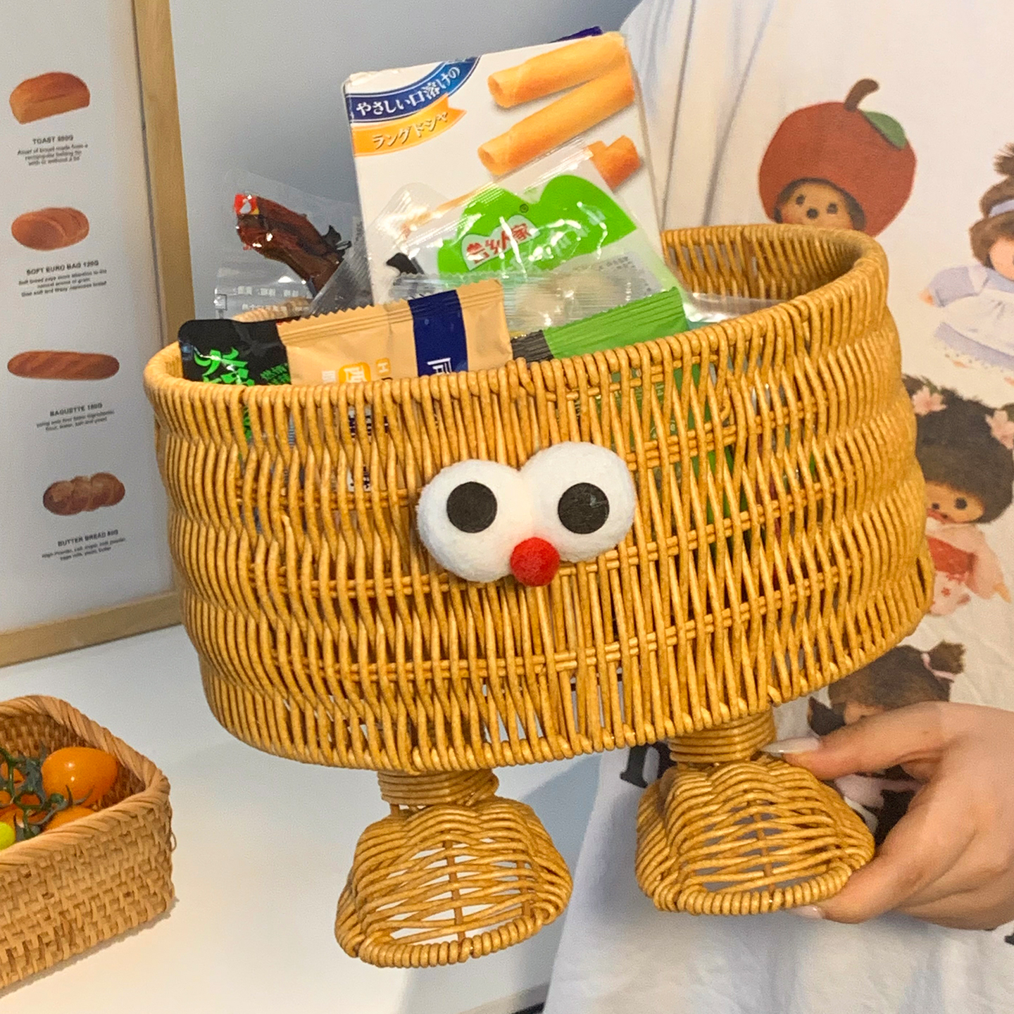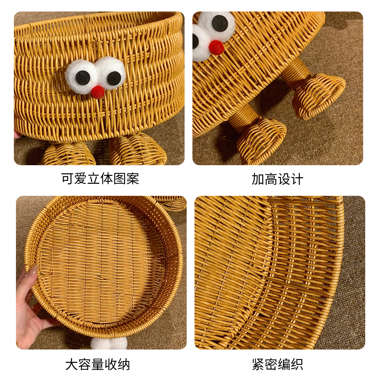 可爱零食藤编收纳筐纯手工水果盘子客厅茶几桌面大容量杂物收纳盒