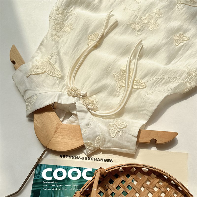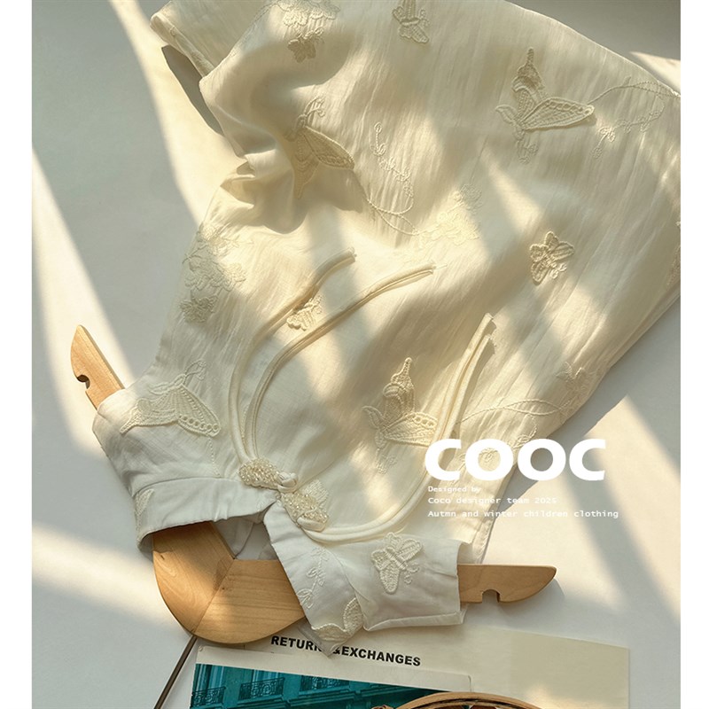 2025夏季女童无袖旗袍中国风洋气白色新中式连衣裙小女孩改良旗袍