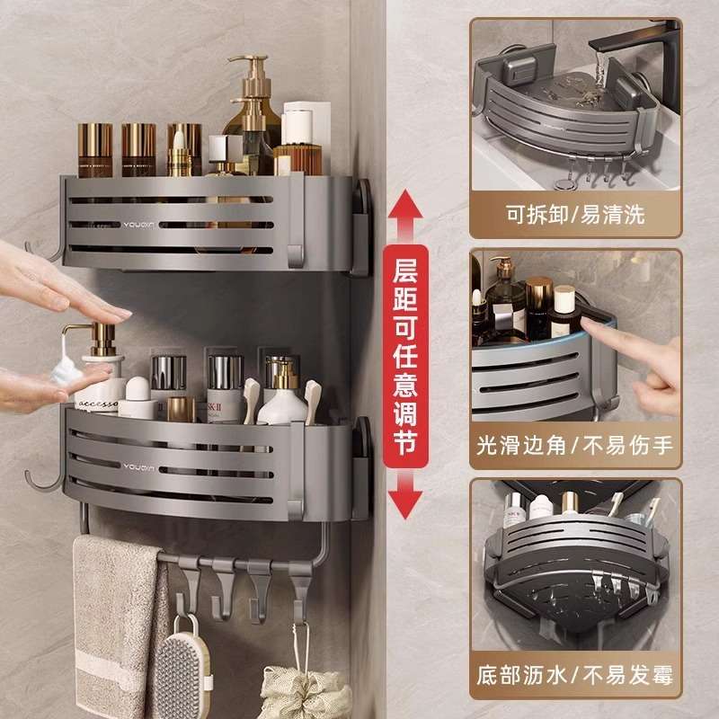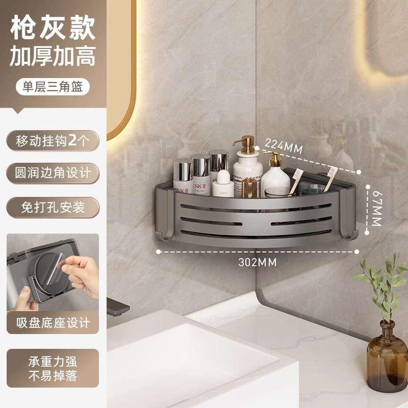 卫生间三角置物架浴室吸盘免打孔壁挂式墙角厕所洗漱台收纳厨房