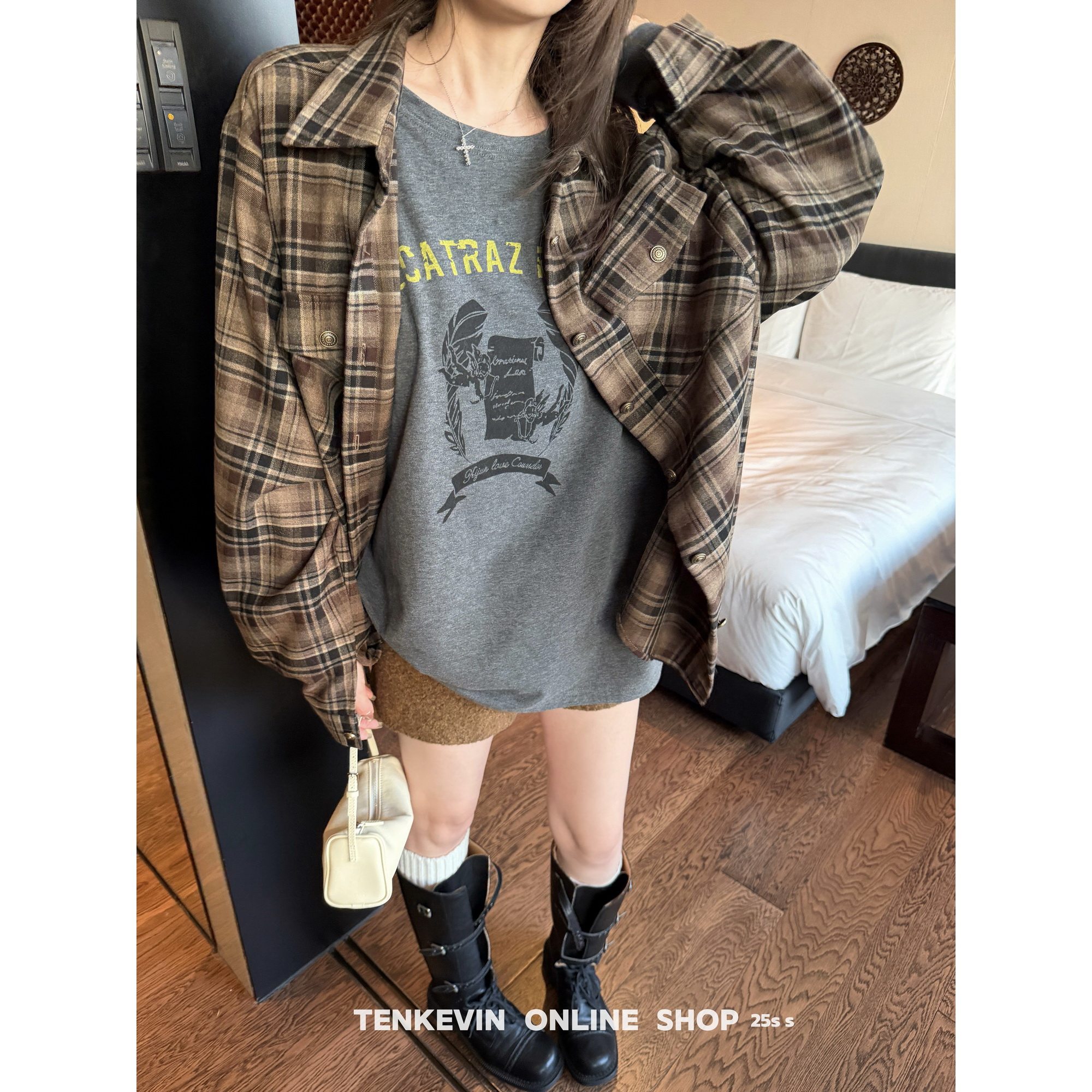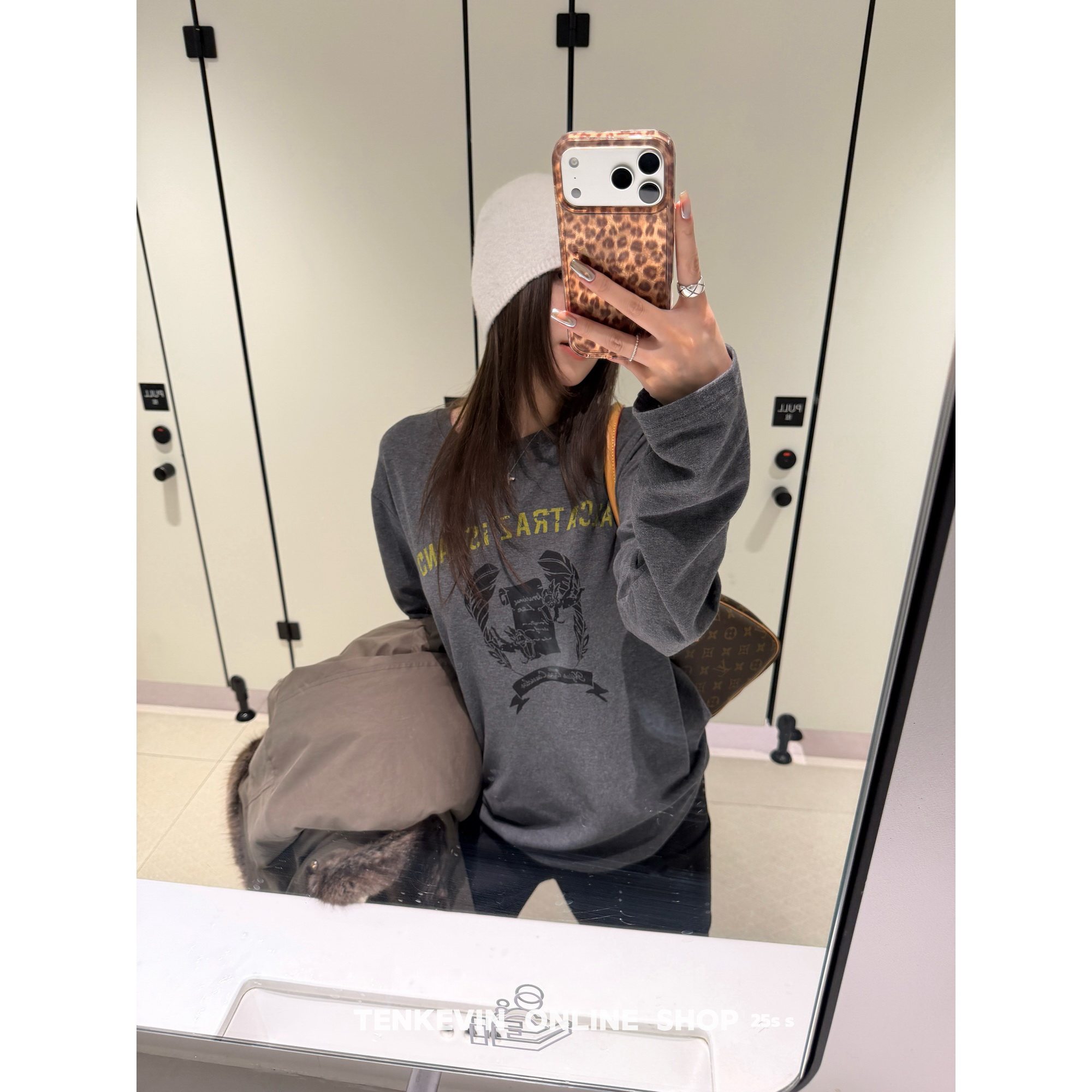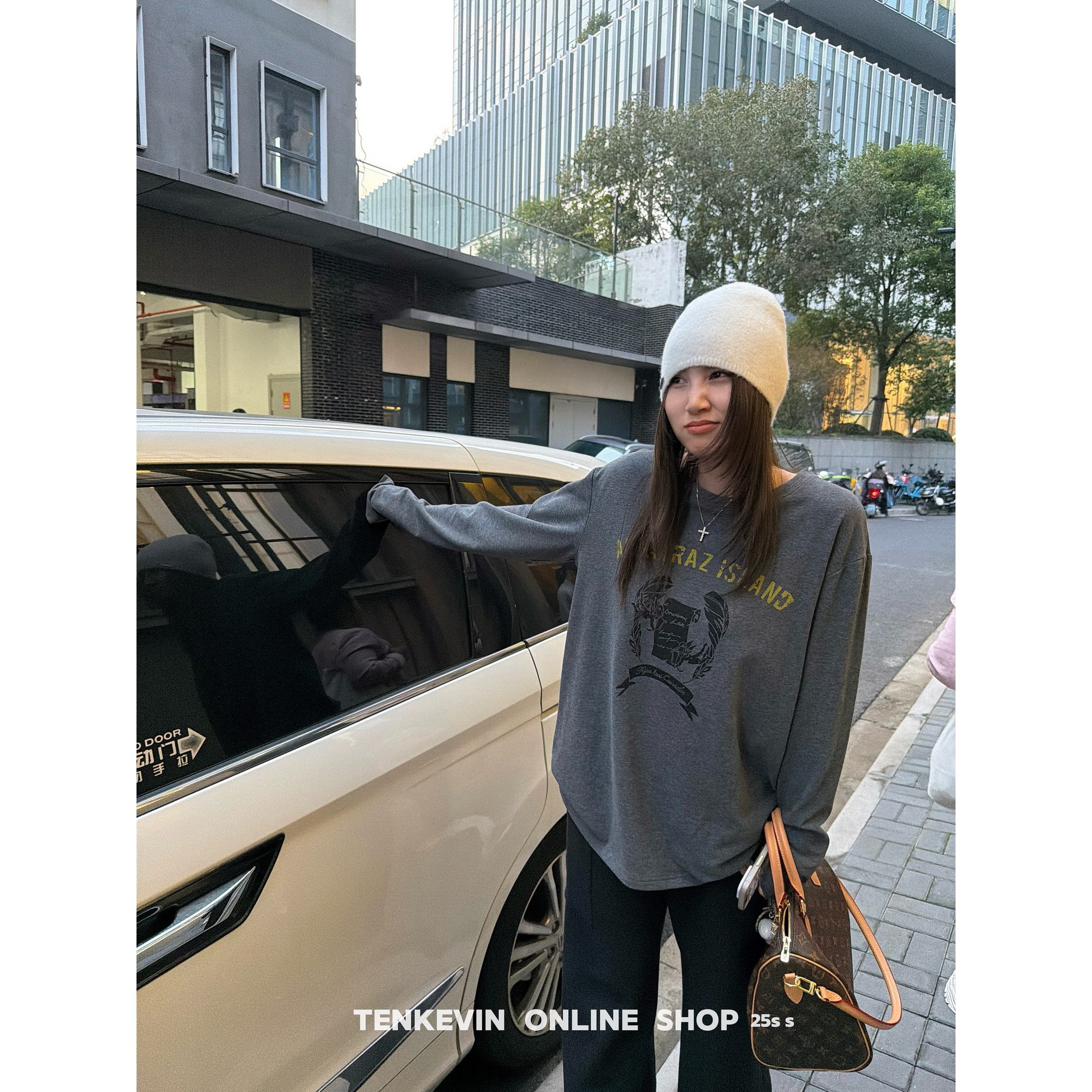 十一石 暖冬舒适区!印花长袖磨毛打底衫女宽松显瘦圆领套头T恤II
