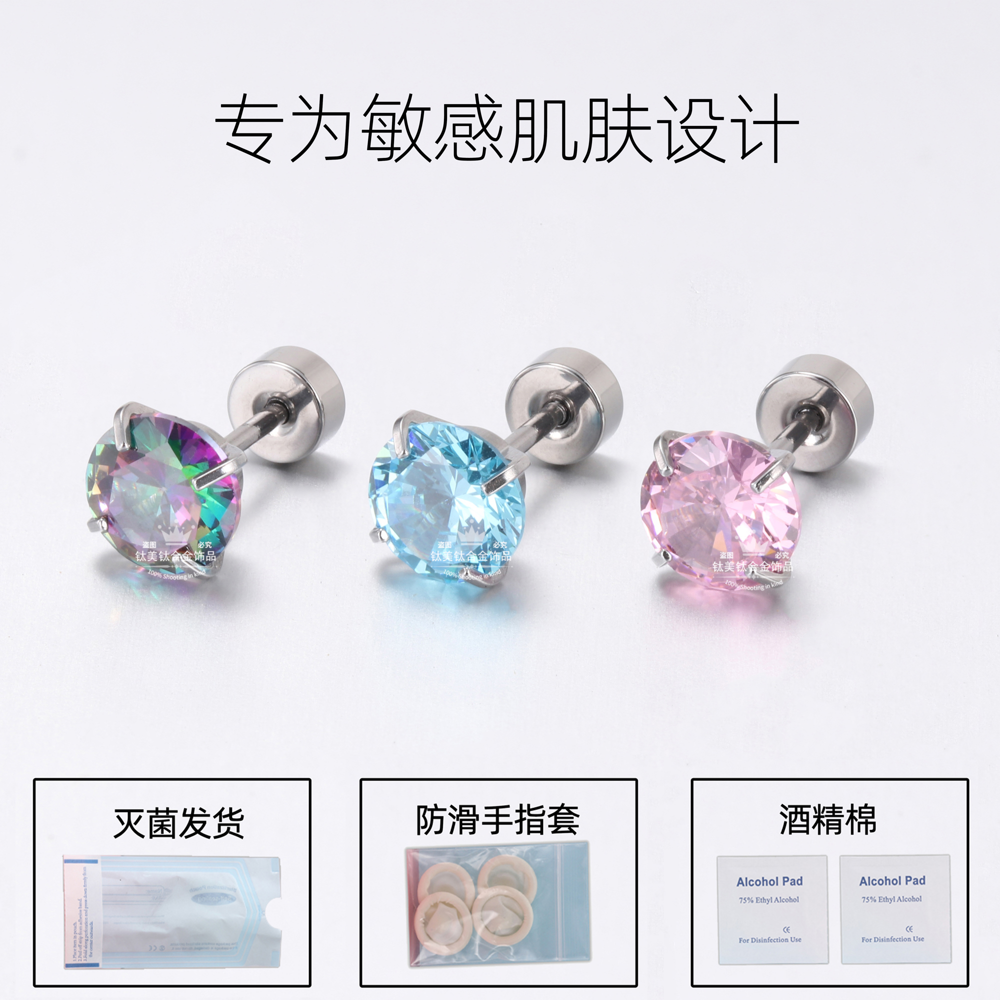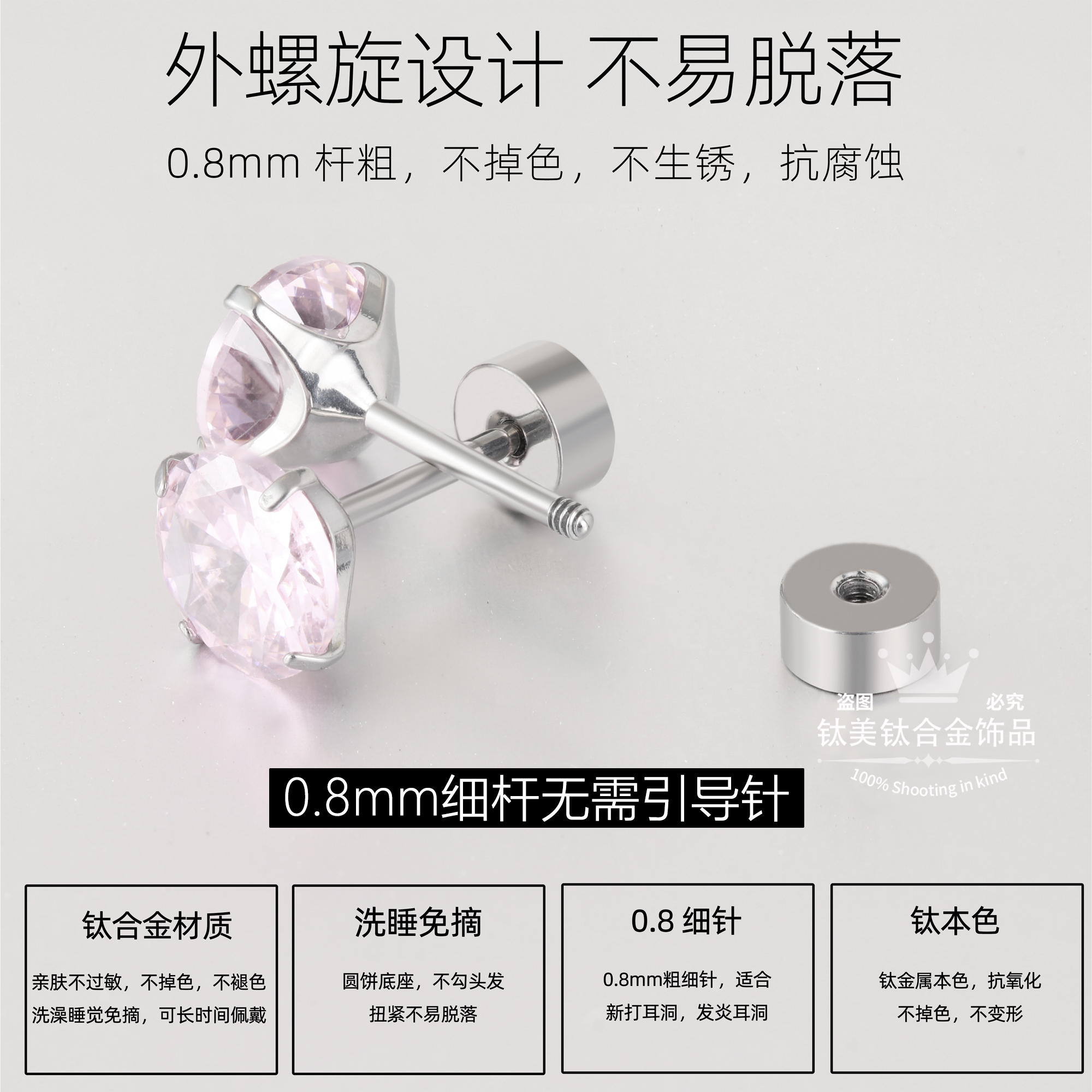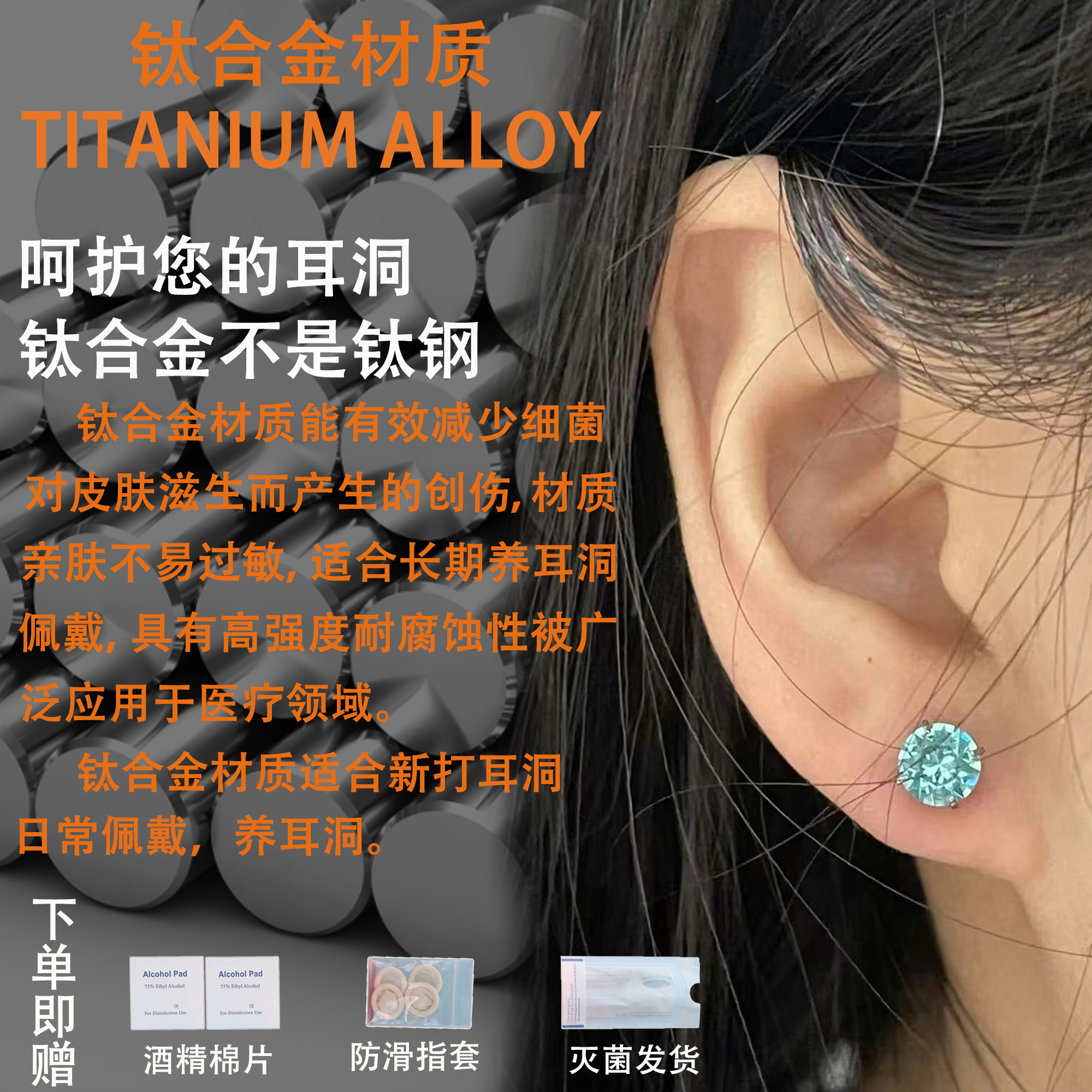 F136钛合金耳钉养耳洞平底耳骨钉耳饰超闪锆石耳蜗钉睡觉免摘耳环