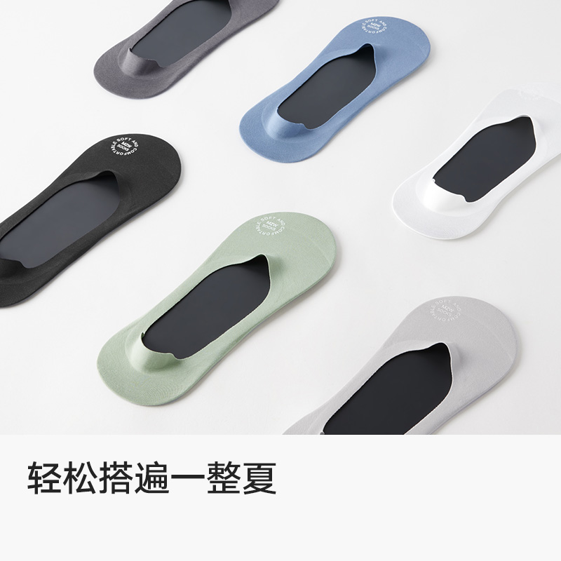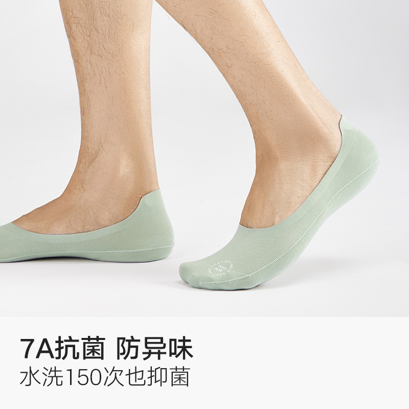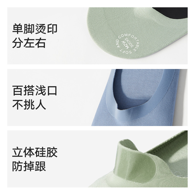 船袜男士夏季薄款冰丝凉感隐形防滑不掉跟棉底7A抗菌防臭袜子短袜
