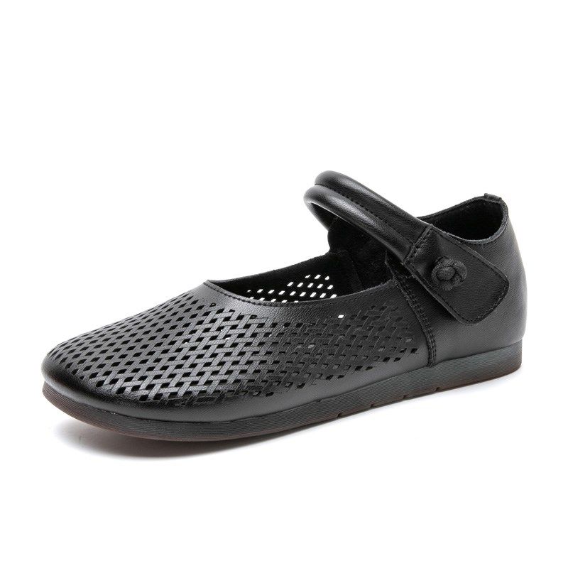 夏季新款妈妈凉鞋真皮软底女鞋中老年防滑镂空皮鞋平底大码洞洞鞋