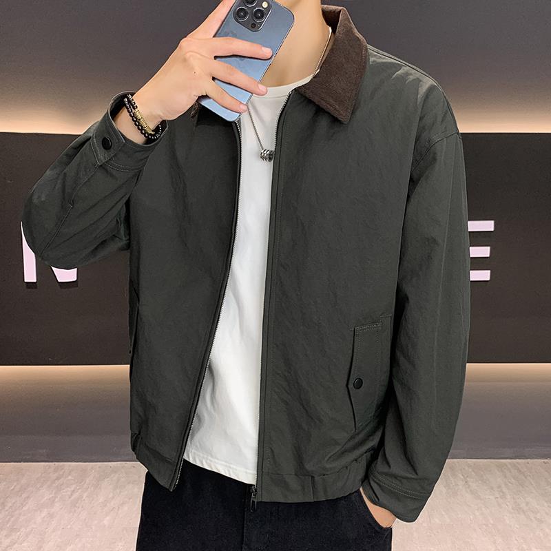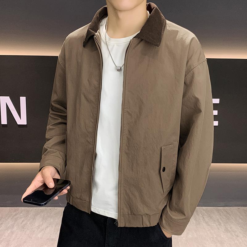 秋冬季2025新款男士外套时尚帅气翻领拼色夹克休闲上衣1005n