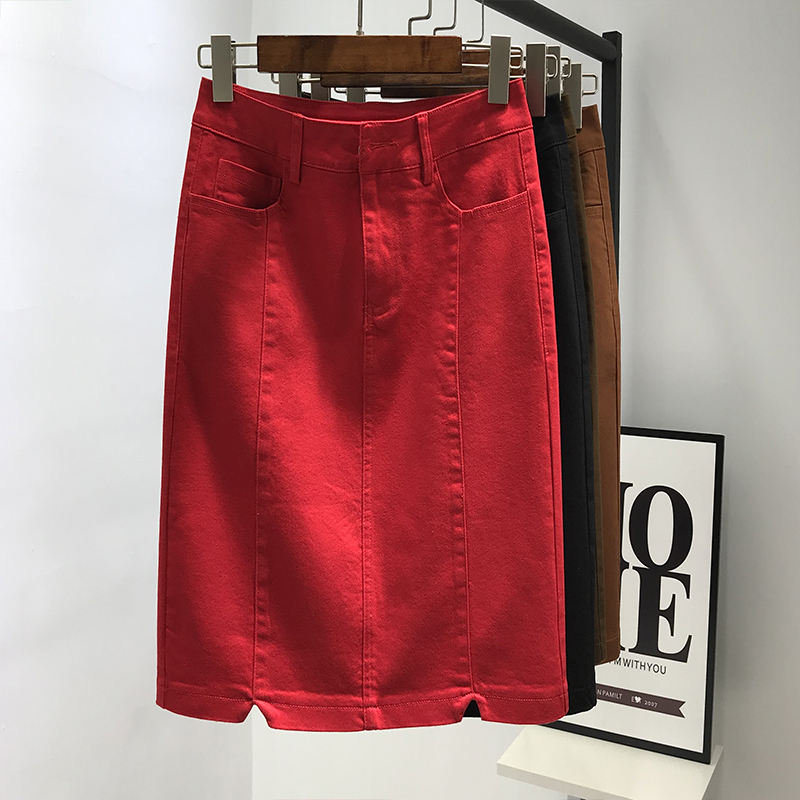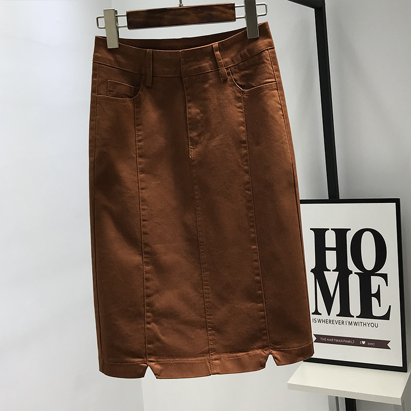 中长款深色牛仔半身裙女2020夏季新款高腰弹力显瘦开叉一步包臀裙