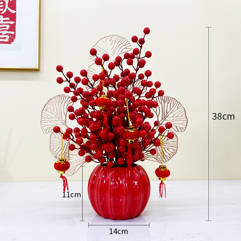 柿子如意摆件装饰年宵花仿真假花插花红果发财果福桶摆放桌面摆设