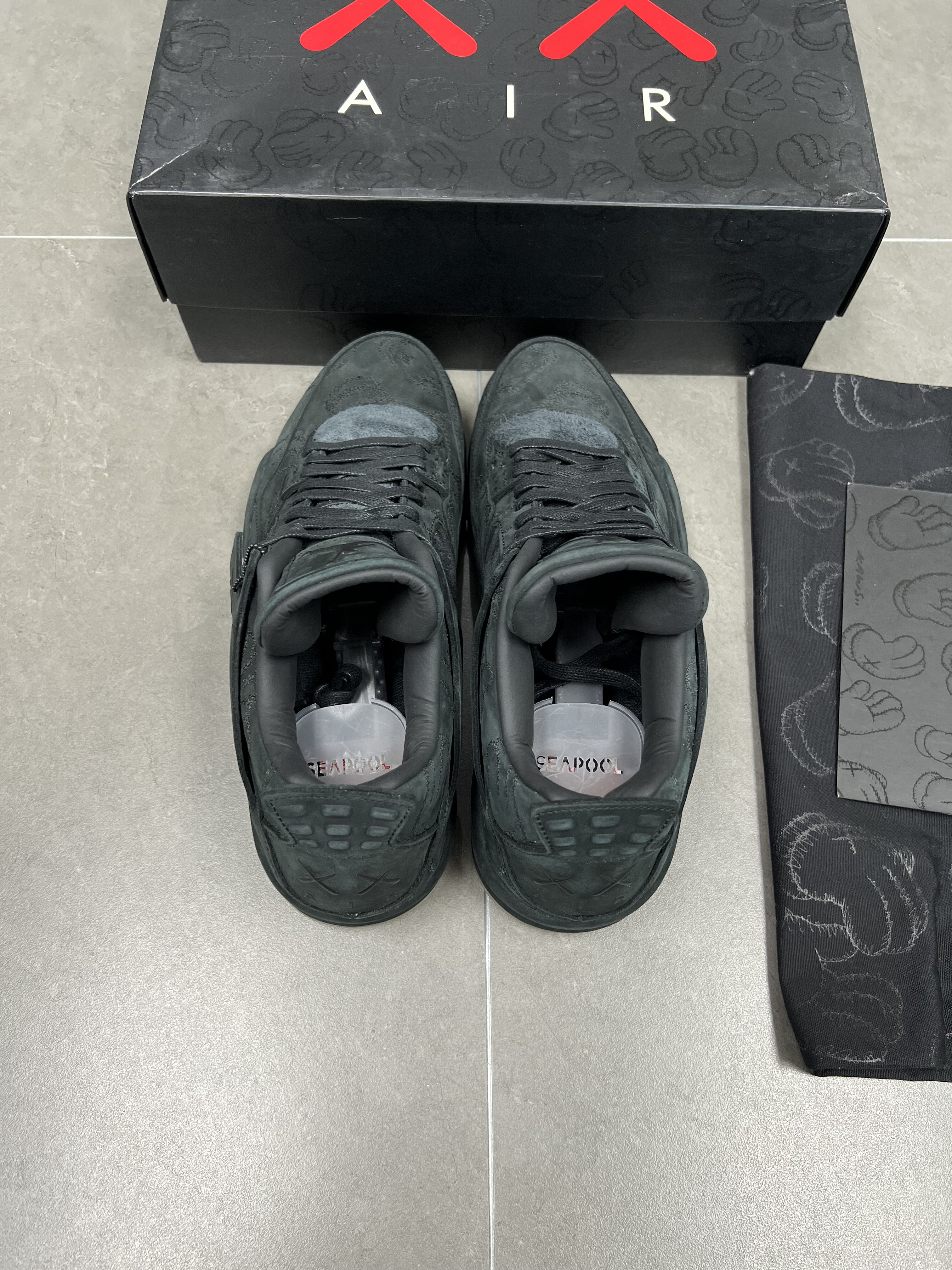 燎原Nike AJ4 x Kaws联名 黑麂皮夜光底篮球低帮板鞋 全新45码