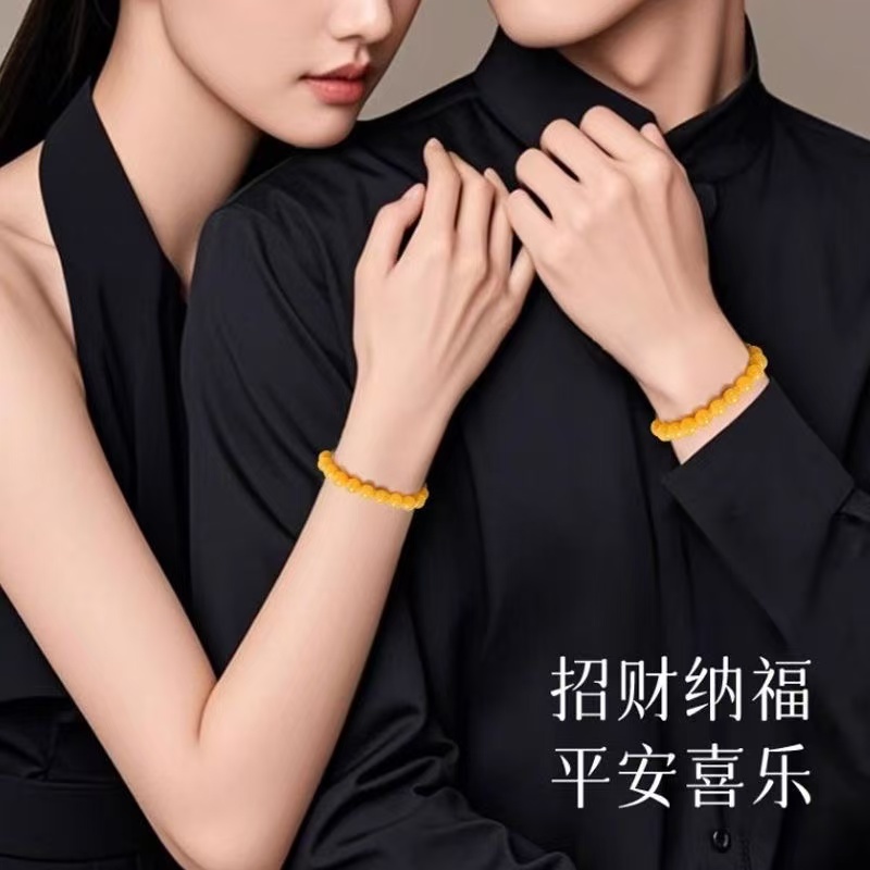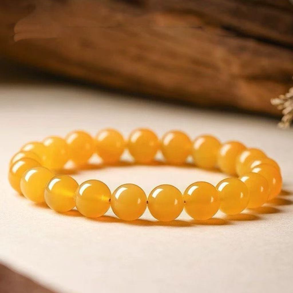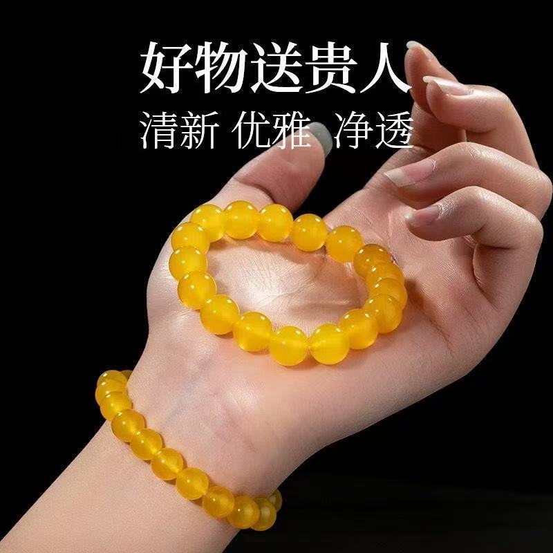 天然冰种黄玛瑙手串散珠水晶手链串珠黄色鸡油情侣招财收藏级单圈