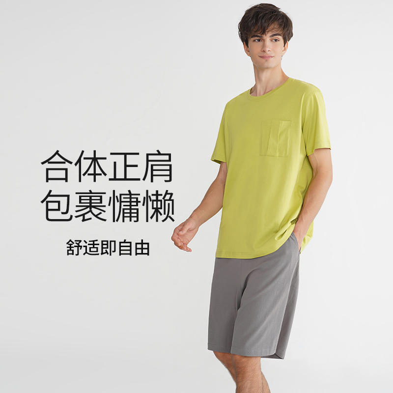 淳度男士睡衣夏季纯棉短袖短裤高级感宽松大码可外穿家居服套装薄