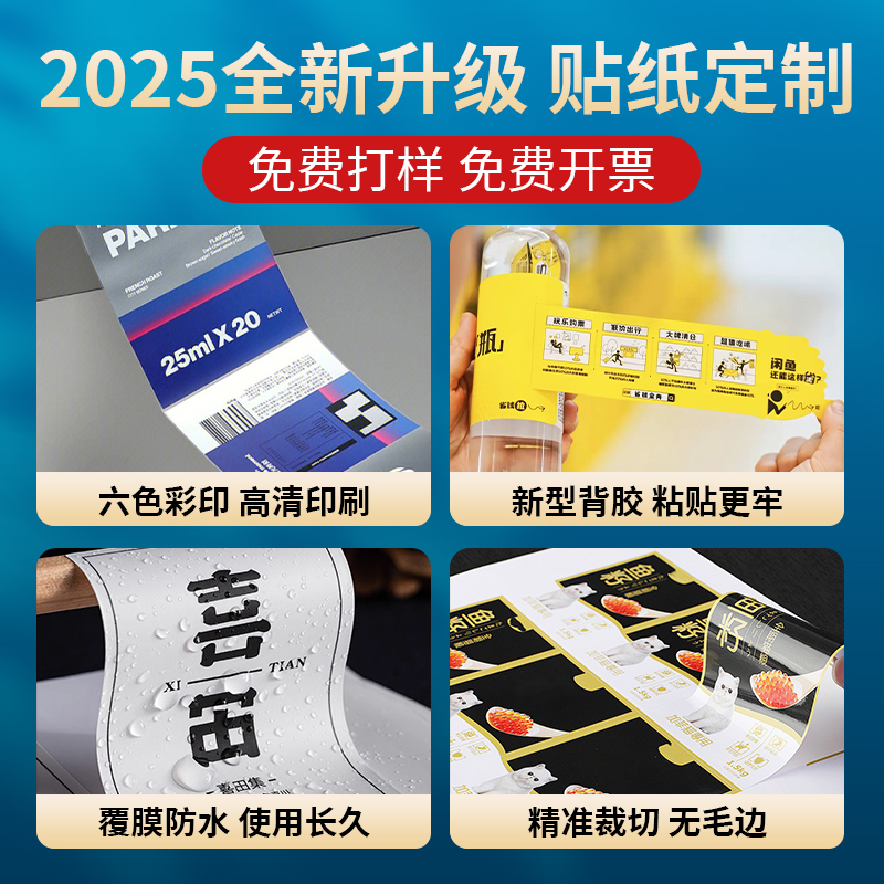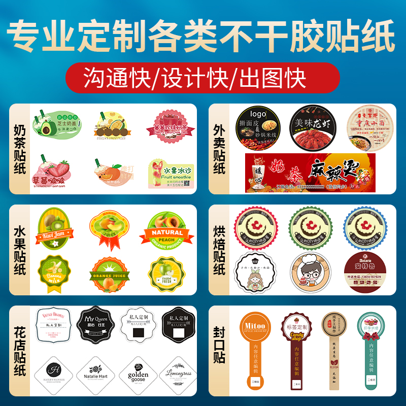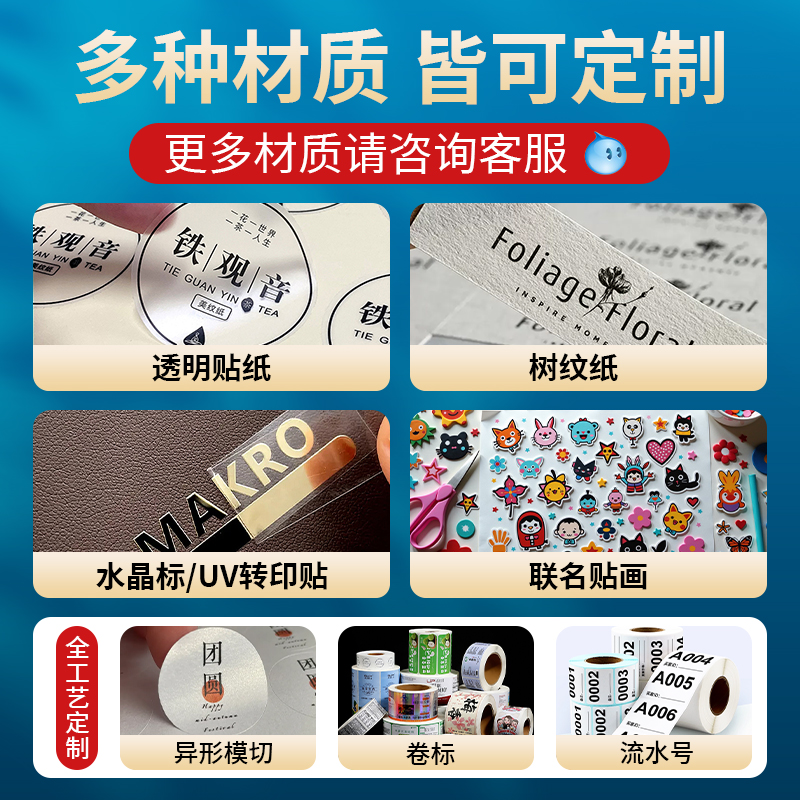 二维码不干胶贴纸定制印刷广告海报标签彩色牛皮透明卷筒标外卖