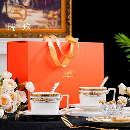 欧式骨瓷咖啡杯碟家用下午茶具套装陶瓷茶杯茶碟拿铁咖啡杯礼物