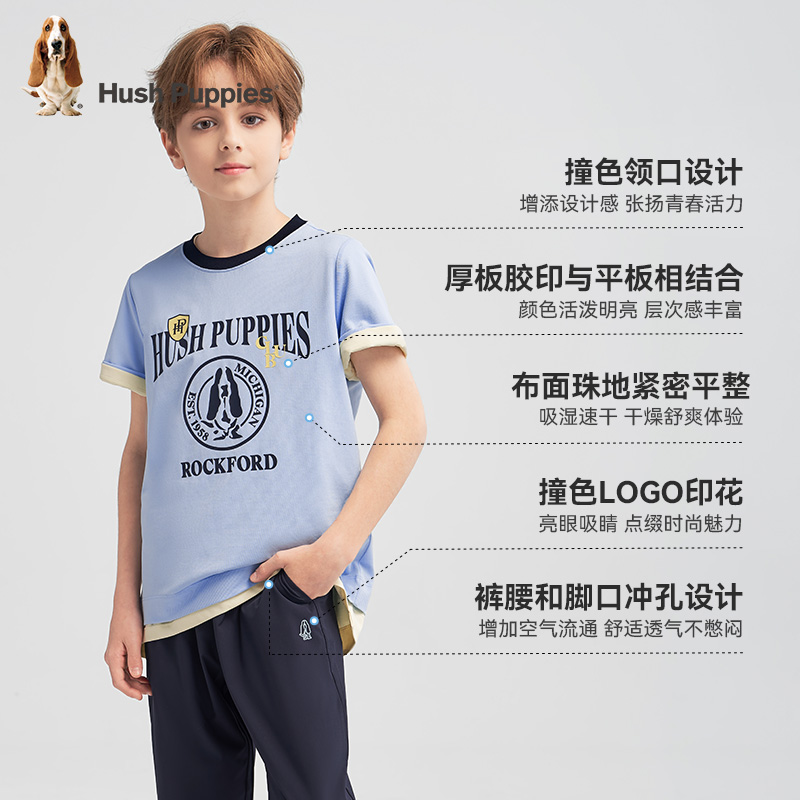 暇步士童装儿童套装2025夏季新款男童休闲短袖女童速干长裤两件套