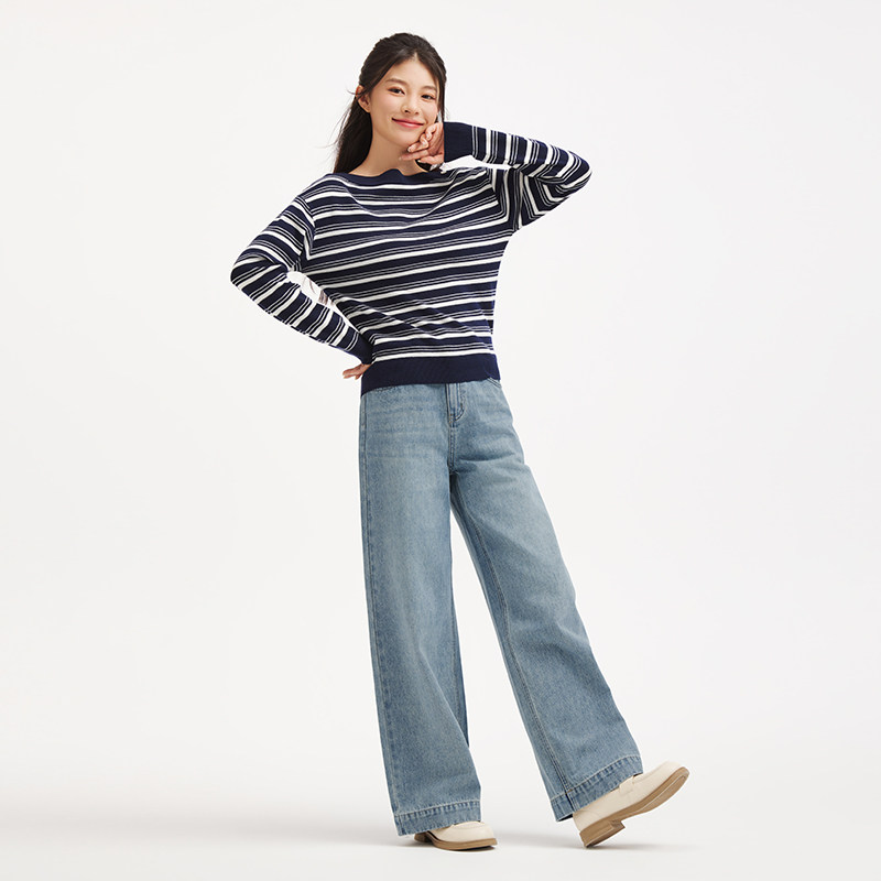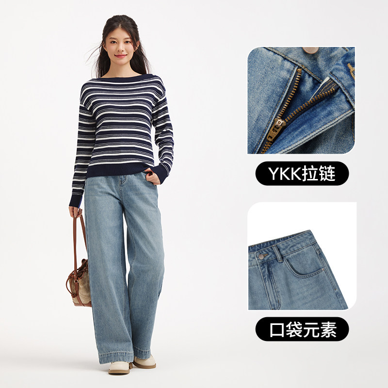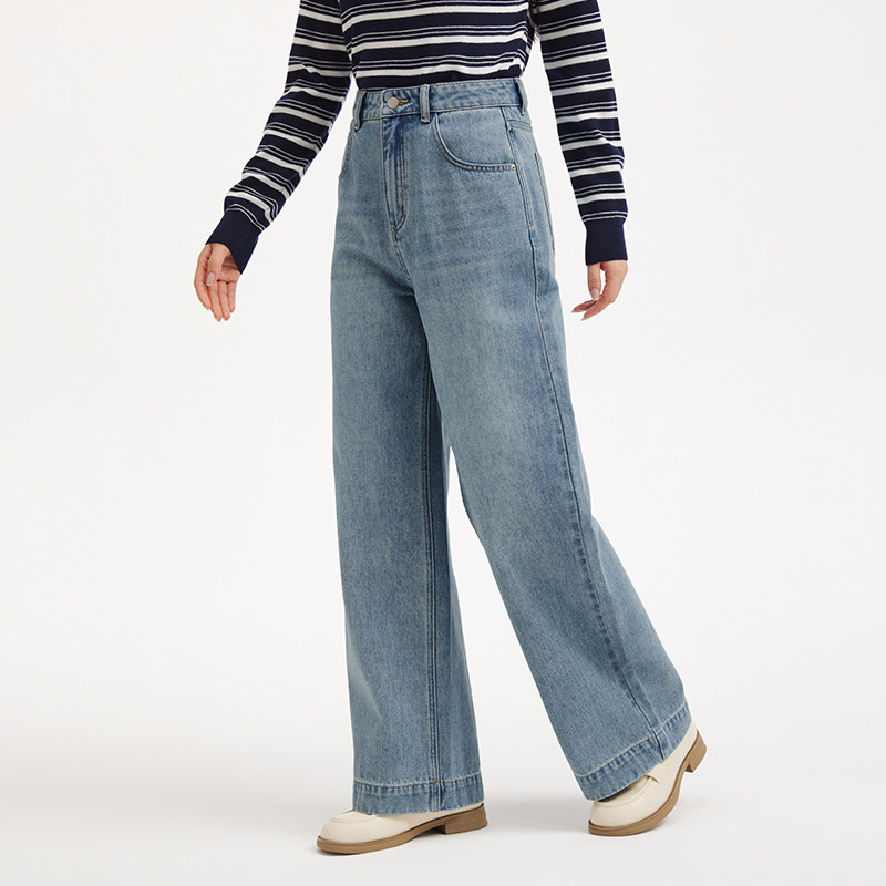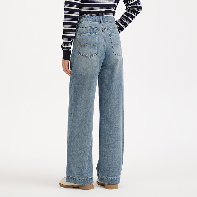热风女士直筒牛仔裤2026年春季新款休闲阔腿宽松舒适显瘦牛仔裤