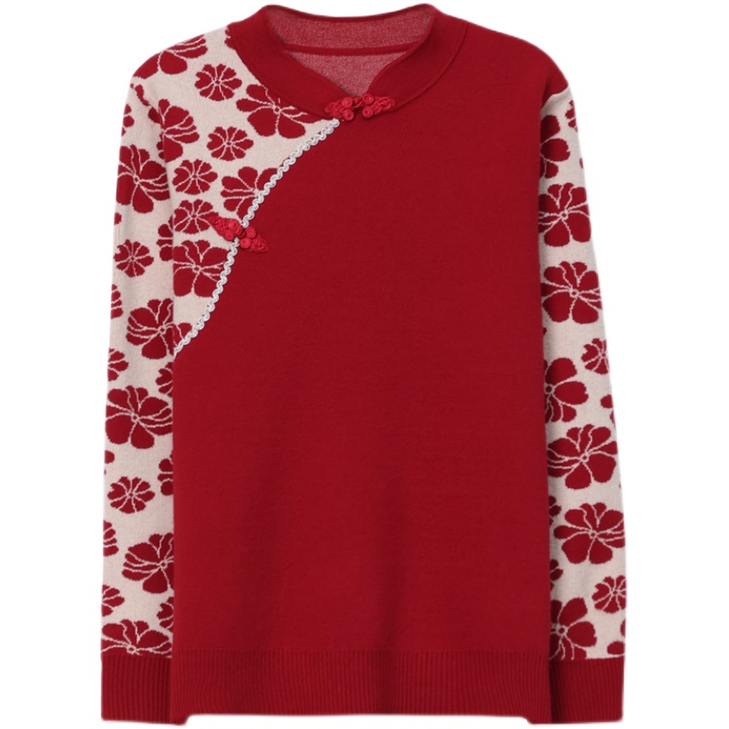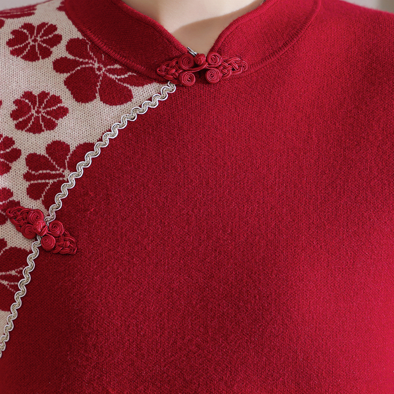 新款妈妈春装针织长袖旗袍上衣中老年女装春秋时尚气质减龄打底衫
