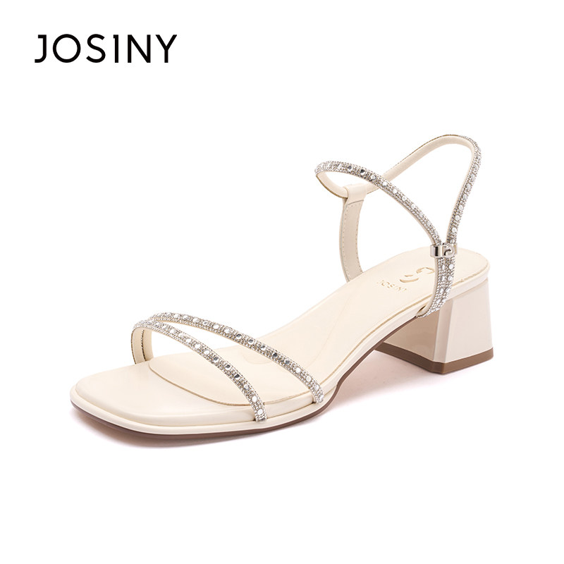 卓诗尼证品水钻一字带百搭凉鞋