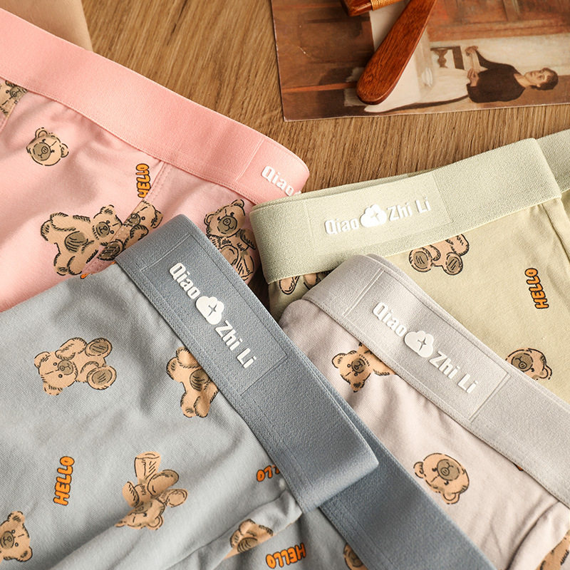 纯棉男士内裤潮男个性透气平角裤卡通小熊U凸囊袋男生四角短裤头