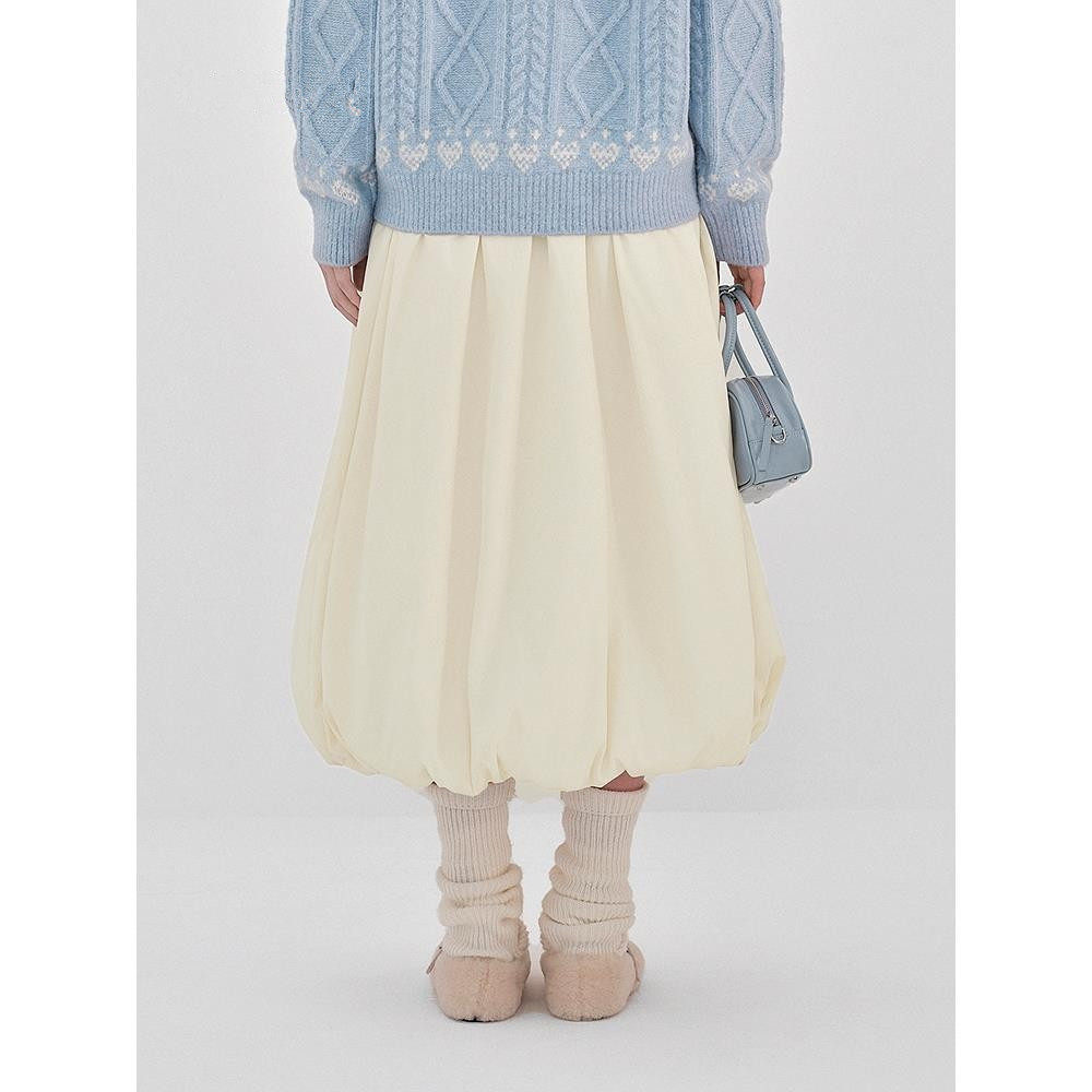 【商场同款】甜美白色花苞裙秋冬新夹棉长裙温暖半身裙C1GFF4411