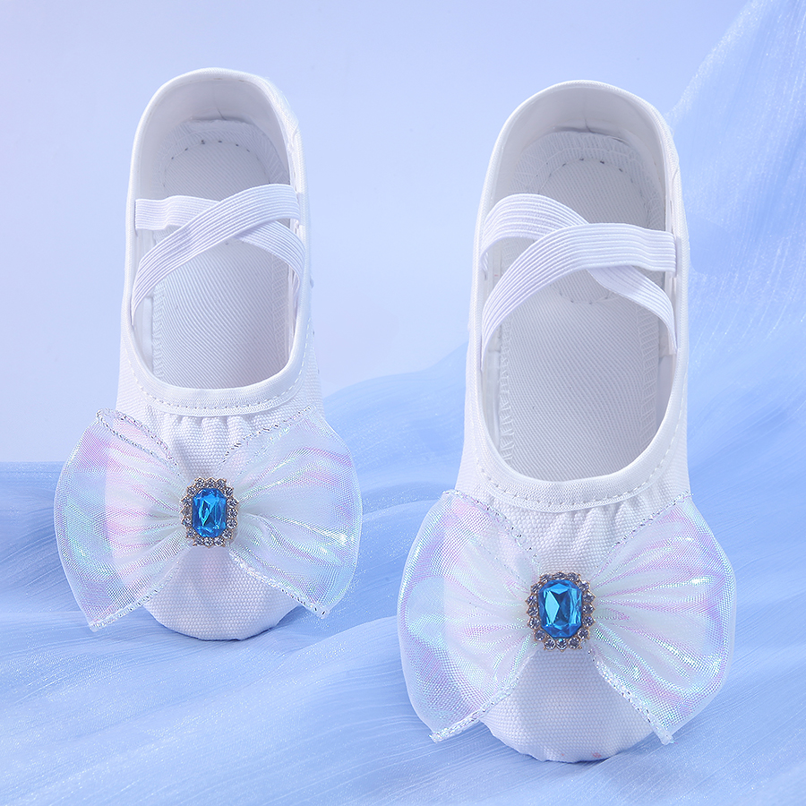 新款蓝色舞蹈鞋女童夏跳舞专用软底中国公主练功缎面宝宝儿童芭蕾