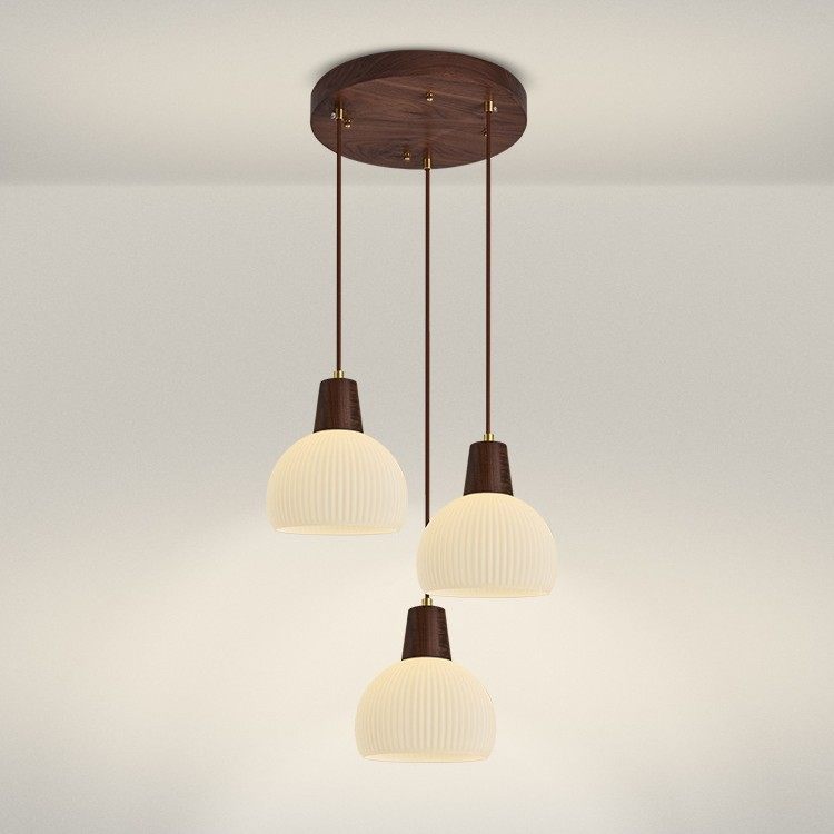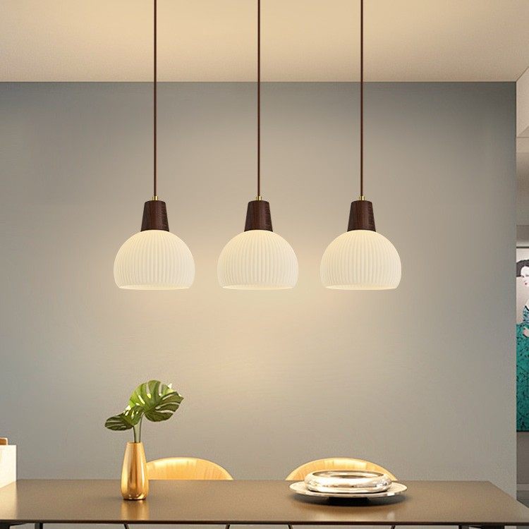 黑胡桃木餐厅灯吊灯三头玻璃北欧led餐桌饭厅灯 现代中式吧台灯具