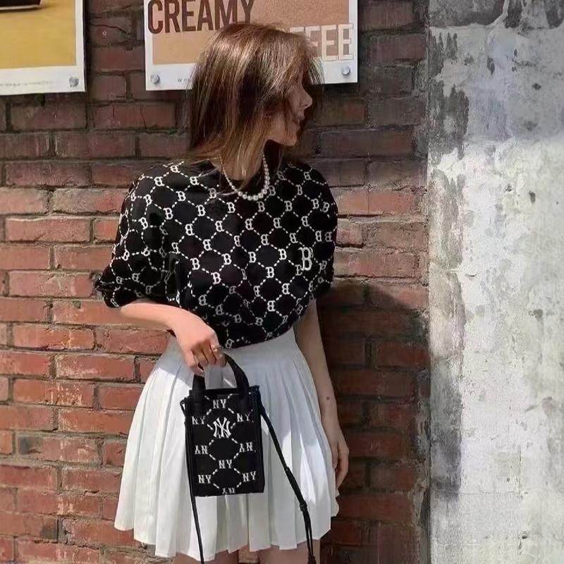 潮牌MLB正品春夏新款满标老花满印NY迷你托特包手机包3ACRH012N