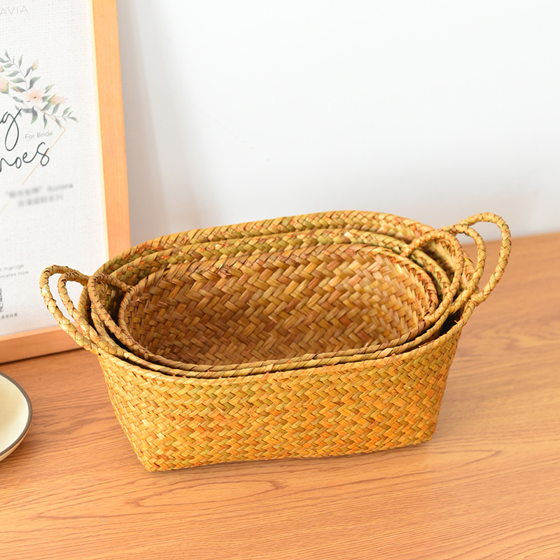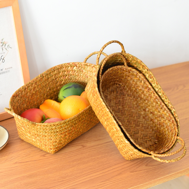 桌面柳编杂物整理收纳筐田园手工草编零食收纳水果篮双手提藤编筐