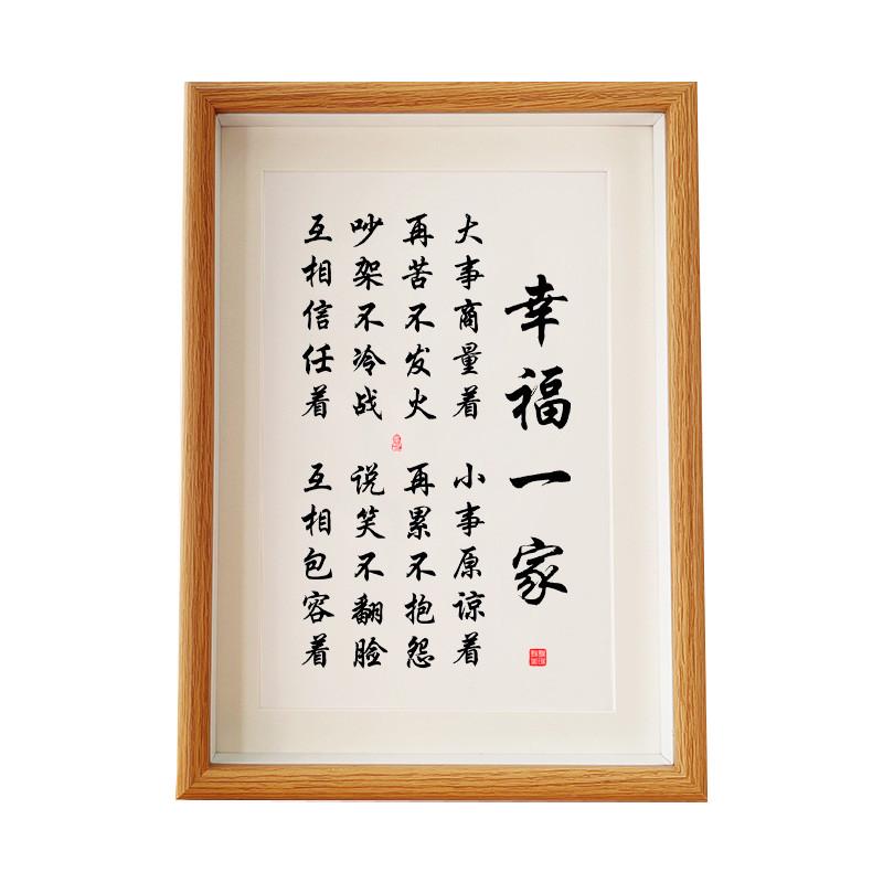 幸福一家大事商量着书法励志摆件书房办公室桌面实木相框摆台挂画