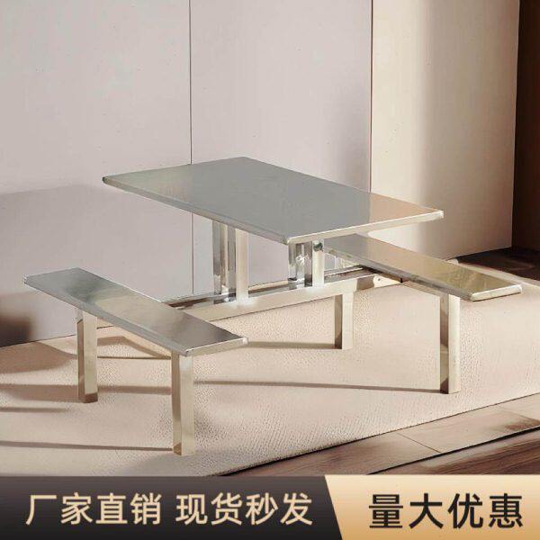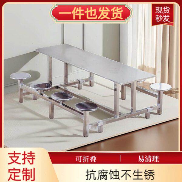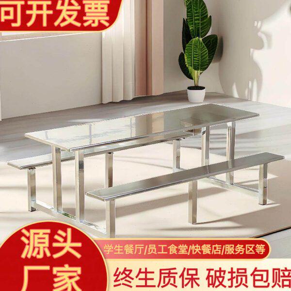 连体4人人6人8学校加厚员工工厂快餐桌椅不锈钢餐厅食堂餐桌组合