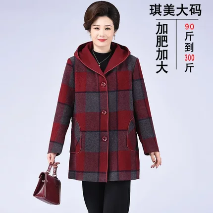 200斤中老年胖妈妈装秋冬装外套加肥加大码中年女装羊绒大衣风衣
