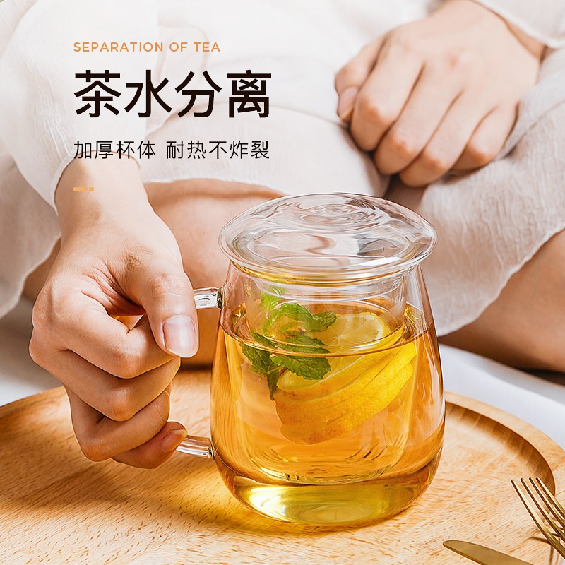 物生物玻璃杯茶j水分离泡茶杯女办公室花茶杯家用透明带盖杯子男
