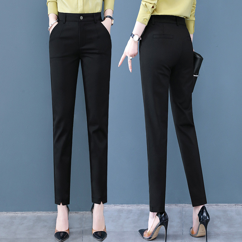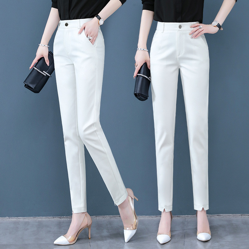 高档高腰哈伦裤女直筒裤新款西装女裤显瘦春秋气质小脚白色九分裤