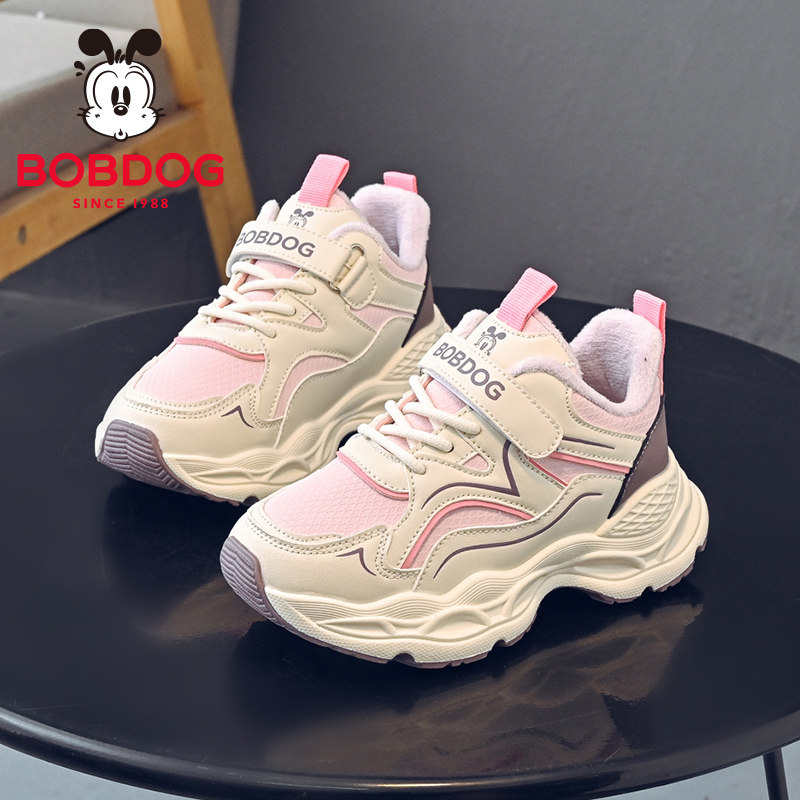 巴布豆童鞋女童加绒鞋子2025新款秋冬款保暖二棉鞋百搭儿童运动鞋