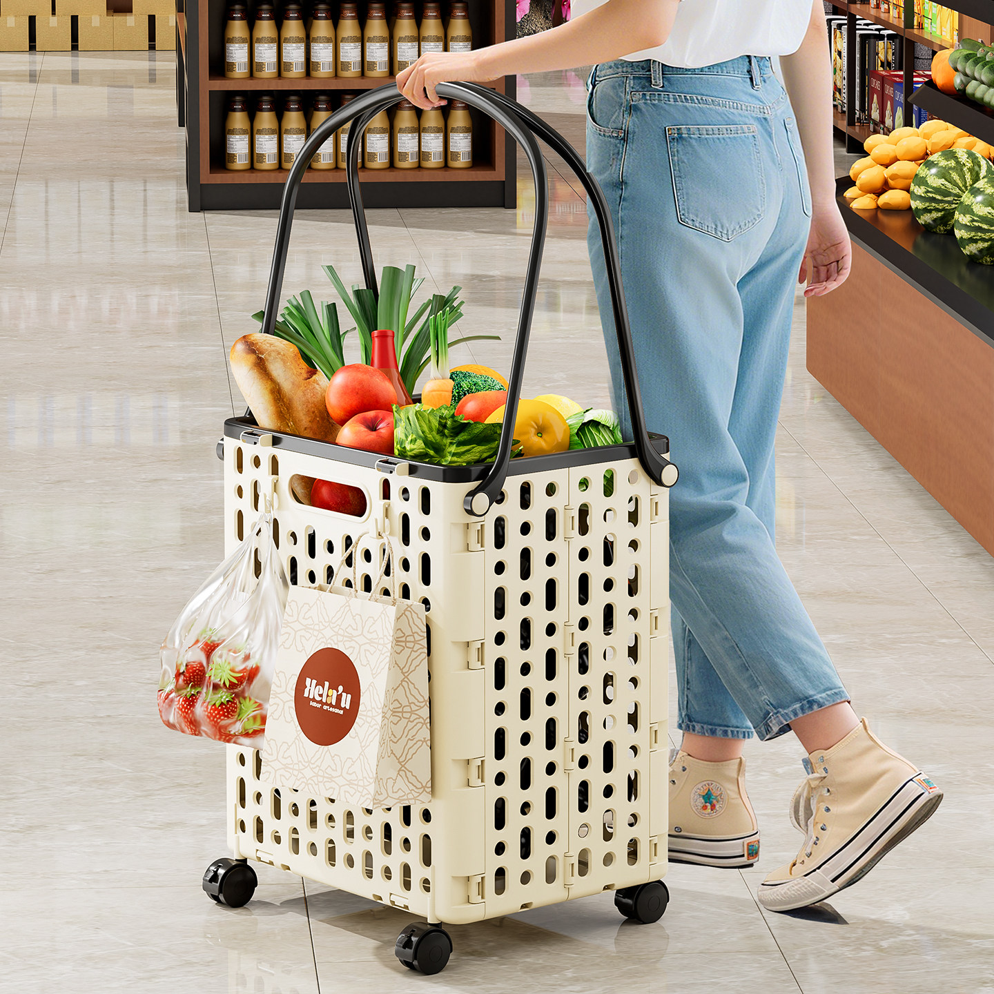 买菜小拉车便携可折叠购物车篮