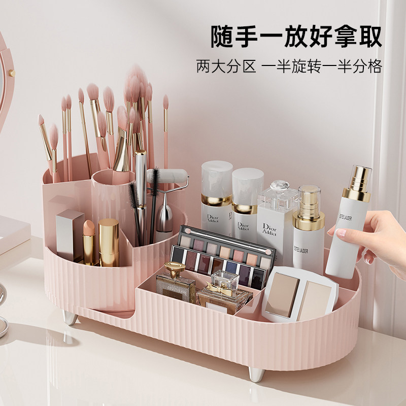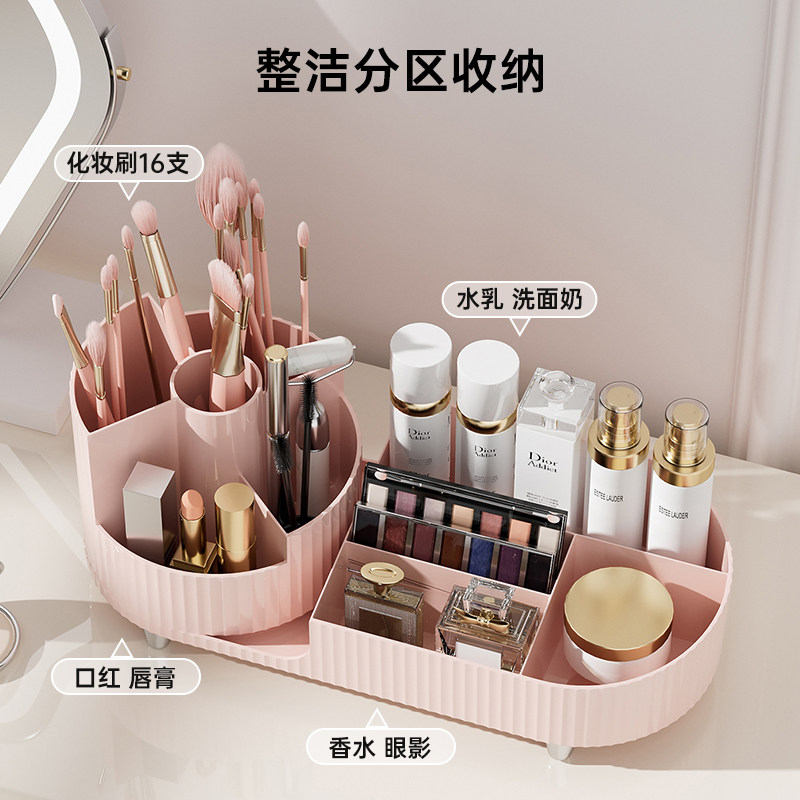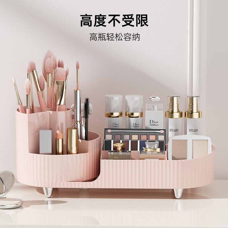 化妆品收纳盒化妆刷筒旋转高级感桌面护肤品梳妆台置物架口红眼影