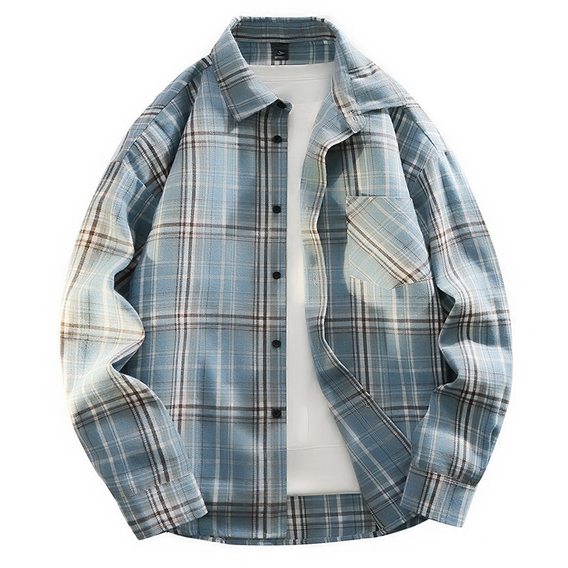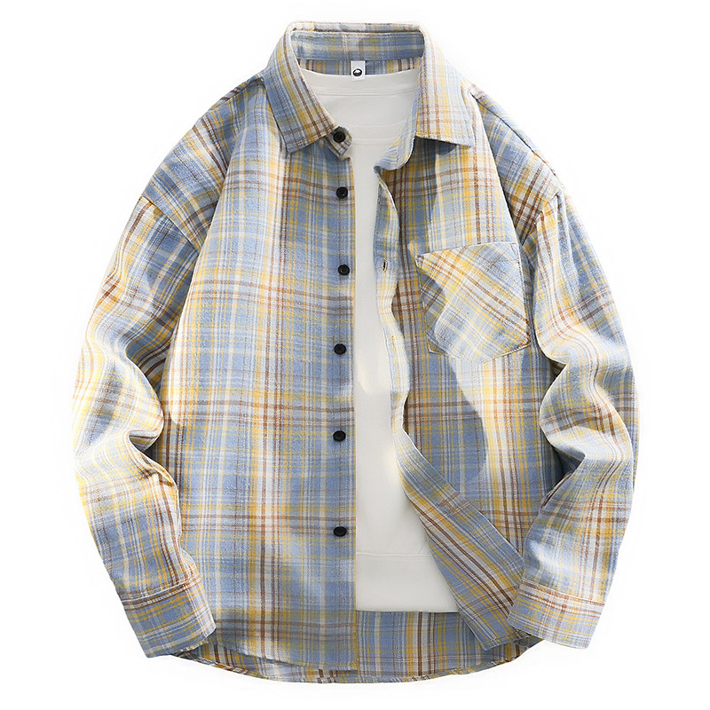 罗蒙春秋季长袖格子衬衫男士百搭休闲潮流宽松日系复古衬衣外套男