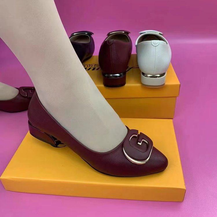 大东妞品牌断码清仓新款夏季软底单鞋女中跟粗跟真皮鞋浅口尖头平