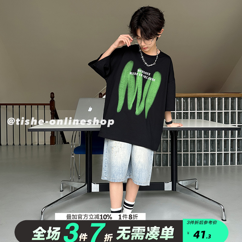 男童短袖T恤2025夏季新款儿童纯棉半袖中大童炸街宽松夏装上衣潮t