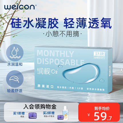 卫康润视O2月抛3片硅水凝胶隐形近视眼镜透氧抗uv防紫外线正品