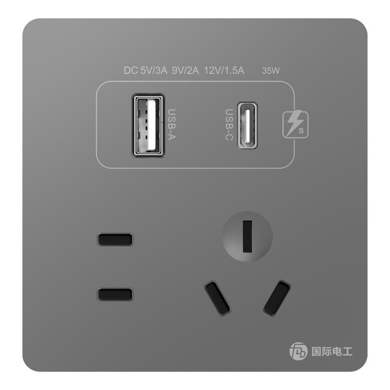 国际电工86型35W快充USB插座开关面板墙壁手机充电Type-c家用五孔
