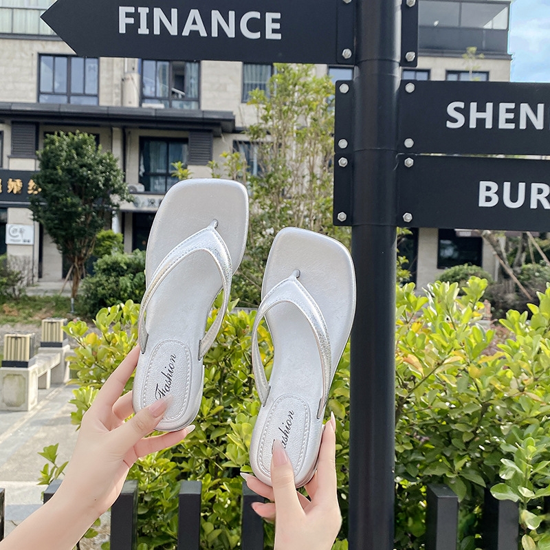 高级方头夹脚人字拖人字2025拖鞋女夏季时尚厚底外穿凉鞋坡跟百搭