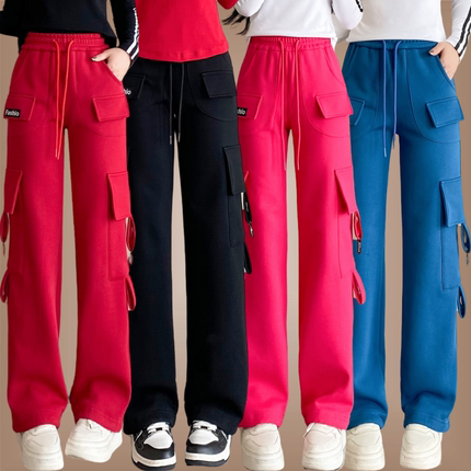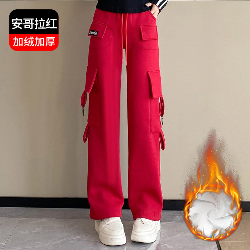 冬季加绒加厚跳舞裤子直筒工装裤