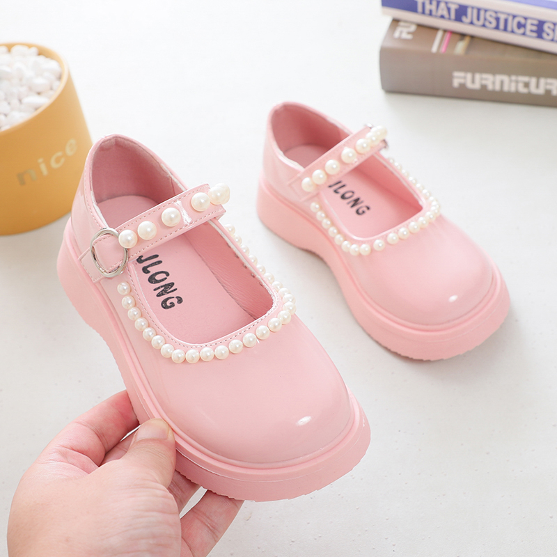 女童小皮鞋2024春秋新款中大童超轻平底小女孩黑色圆头珍珠公主鞋